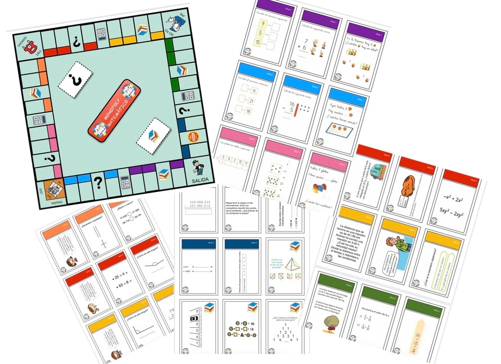 Tablero y tarjetas monopoly matemático
